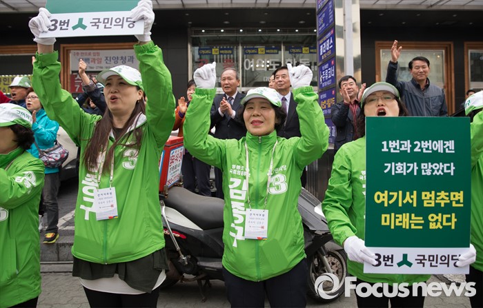 | △ 국민의당, 선거운동 첫날 거리유세 표심잡기 |