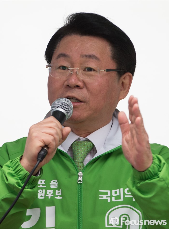 (서울=포커스뉴스) 총선 선거운동이 공식적으로 시자된 31일 오후 김종구 국민의당 영등포을 후보가 서울 영등포구 여의도백화점 앞에서 선거 유세를 하고 있다.