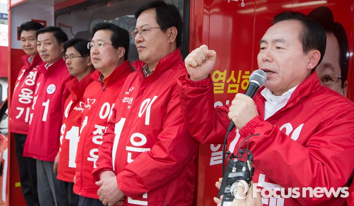 (대전=포커스뉴스) 31일 오후 대전 서대전역광장에서 열린 대전 새누리당 후보자 합동유세에서 이인제 중앙선거대책위원회 공동위원장이 지원유세를 하고 있다.