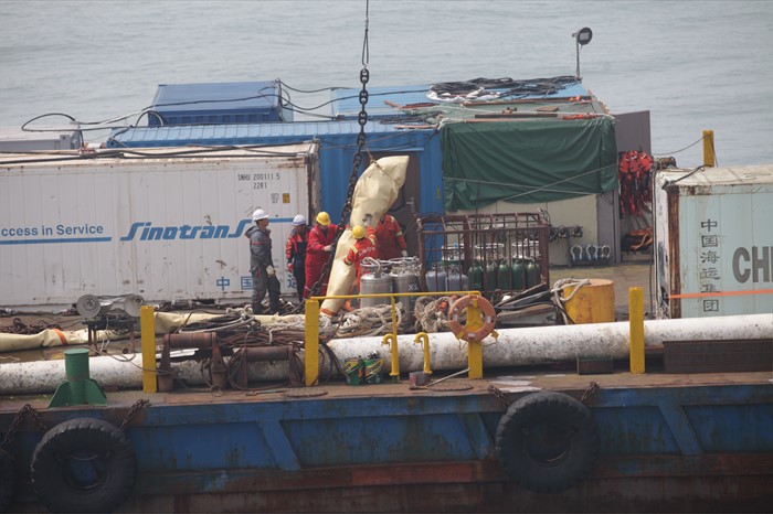(서울=포커스뉴스) 31일 해양수산부는 세월호 인양을 위해 선체 무게를 줄이는 부력확보 작업에 착수했다고 밝혔다.