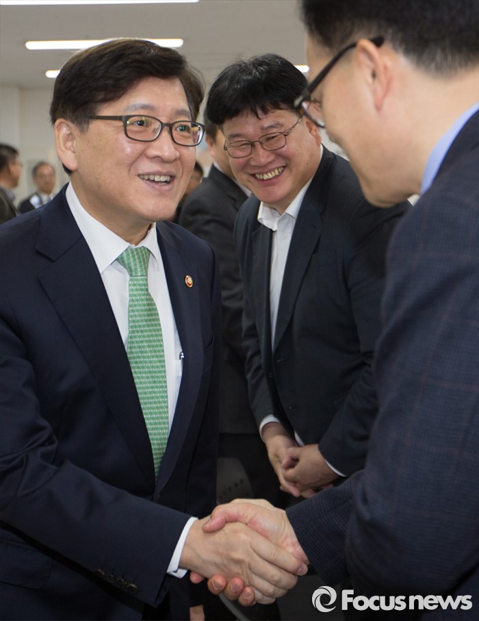 (세종=포커스뉴스) 정진엽 보건복지부장관이 1일 오전 세종시 종촌종합복지센터 대회의실에서 '장애인정책의 전망과 과제'라는 주제로 열린 정책 토론회에서 참석자들과 인사를 나누고 있다.