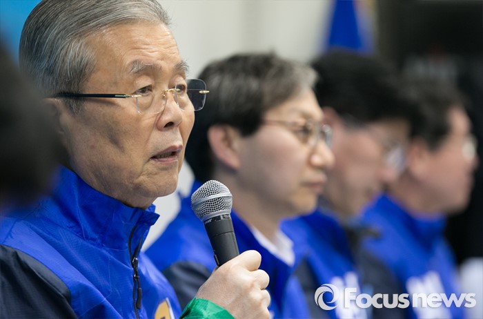 (전주=포커스뉴스) 1일 오전 김성주 더불어민주당 전북 전주병 후보 선거사무소에서 열린 중앙당선거대책위원회의에 참석한 김종인 비대위 대표 겸 선대위원장이 모두발언을 하고 있다.