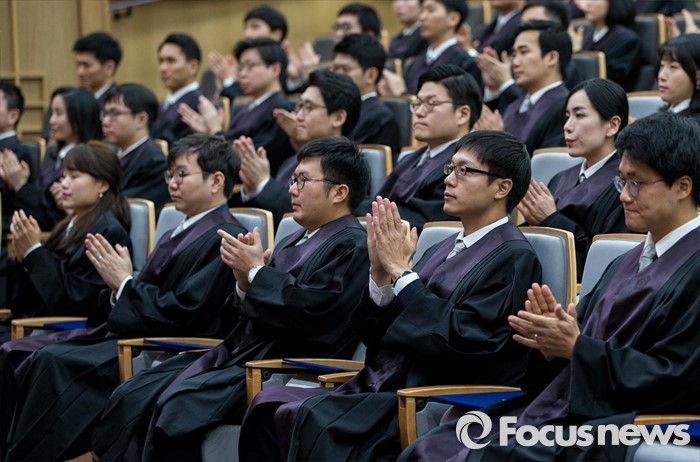 (서울=포커스뉴스) 1일 오전 서울 서초구 대법원 대강당에서 열린 신임 법관 임명식에 참석한 신임 법관들이 박수를 치고 있다.