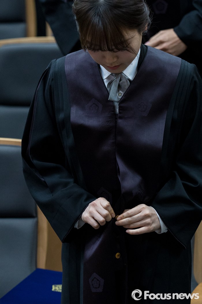 (서울=포커스뉴스) 1일 오전 서울 서초구 대법원 대강당에서 열린 신임 법관 임명식에 참석한 신임 법관들이 법복을 입고 있다.