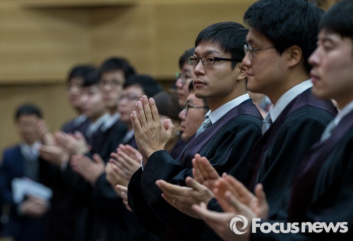 (서울=포커스뉴스) 1일 오전 서울 서초구 대법원 대강당에서 열린 신임 법관 임명식에 참석한 신임 법관들이 박수를 치고 있다.