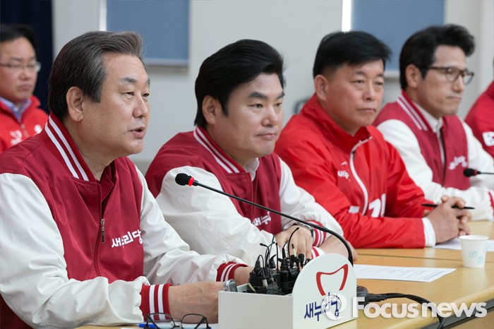 (수원=포커스뉴스) 김무성(왼쪽) 새누리당 대표가 1일 오전 경기도 수원시 장안구 정조로 새누리당 경기도당에서 열린 중앙선대위 회의에 참석해, 모두발언하고 있다.
