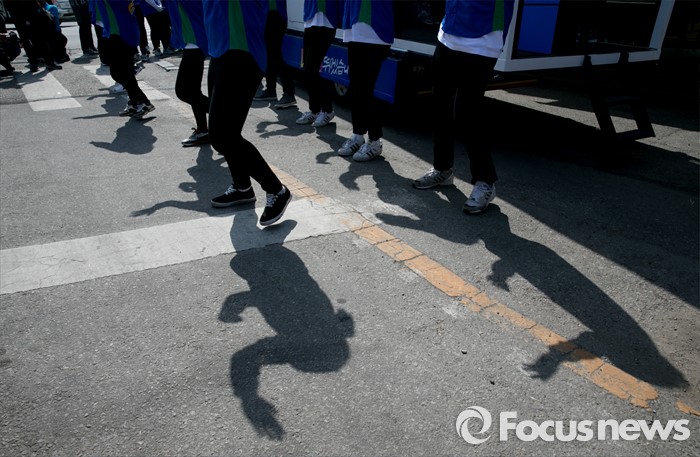 (전주=포커스뉴스) 1일 오전 전북 전주 모래내시장 입구에서 열린 더불어민주당 최형재 전주을, 김성주 전주병 후보 유세에 참여한 선거운동원들이 로고송에 맞춰 율동을 선보이고 있다.