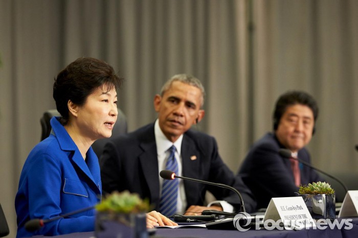 박 대통령은 이날 오전 한미 정상회담으로 공식일정을 시작해 한미일 정상회의, 한일 정상회담, 한중 정상회담을 연이어 개최하면서 북한 문제에 대한 공조 방안을 논의했다.미국 워싱턴을 방문한 박근혜 대통령이 31일(현지시각) 오후 제4차 핵안보정상회의 첫 공식 일정인 환영 리셉션 및 업무만찬에 참석했다. 사진은 그에 앞서 열린 한미일 정상회의 공동 기자회견. 2016.03.31 <사진출처=청와대>