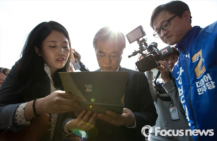 (서울=포커스뉴스) 1일 오후 문재인 전 더불어민주당 대표가 서울 은평구 연신내역 앞에서 강병원 은평을 후보와 함께 유세를 하고 있다.