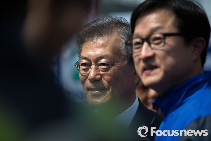 (서울=포커스뉴스) 1일 오후 문재인 전 더불어민주당 대표가 서울 은평구 연신내역 앞에서 강병원 은평을 후보와 함께 유세를 하고 있다.