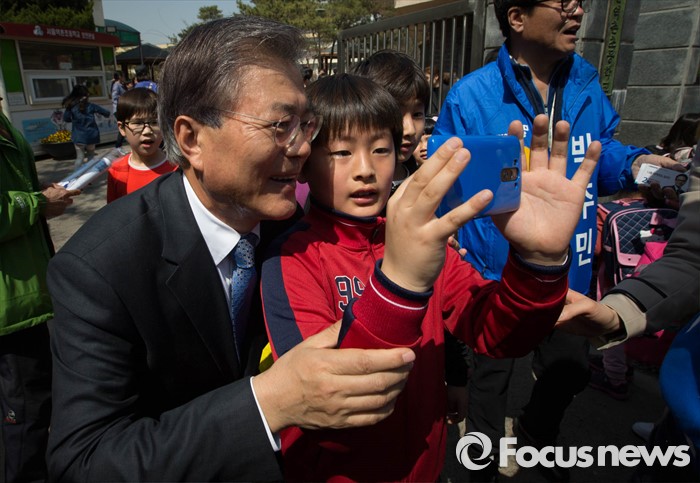 | △ 한 어린이와 셀카찍는 문재인 전 대표 |