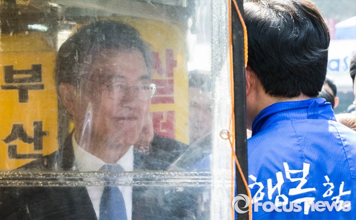 (서울=포커스뉴스) 1일 오후 문재인 전 더불어민주당 대표가 서울 은평구 연신내역 앞에서 강병원 은평을 후보와 함께 유세를 하고 있다.