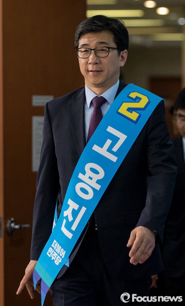 (서울=포커스뉴스) 고용진 더불어민주당 노원갑 후보가 1일 오후 서울 여의도 국회 정론관에서 야권단일화 공식 제안 기자회견을 하기 위해 단상에 오르고 있다. 고 후보는 이날 기자회견에서 이형남 국민의당 후보에게 모든 조건을 수용할테니 단일화에 응할 것을 제안했다.