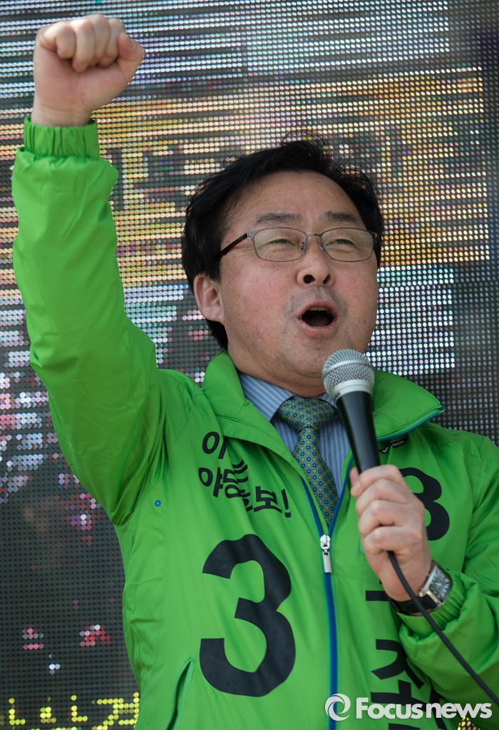 (안산=포커스뉴스) 안철수 국민의당 상임공동대표가 참석한 가운데 부좌현 단원구을 후보가 1일 오후 안산시 단원구 초지동에서 유권자들에게 지지를 호소하고 있다.