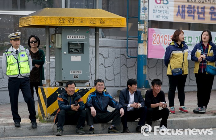 (완주=포커스뉴스) 1일 오후 전북 완주군 둔산공원 앞 사거리에서 시민들이 김종인 더불어민주당 비대위 대표 겸 선대위원장의 안호영 완주·진안·무주·장수군 후보 지지 발언을 지켜보고 있다.