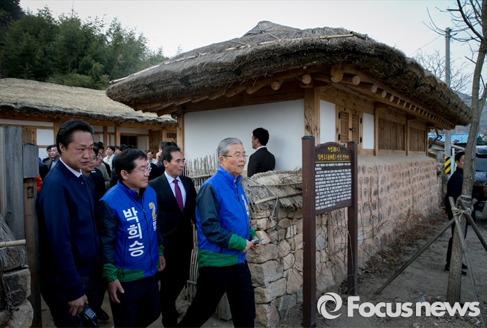 (순창=포커스뉴스) 김종인(오른쪽) 더불어민주당 비대위 대표 겸 선대위원장이 1일 오후 전북 순창군 가인 김병로 선생 생가를 방문해 박희승(오른쪽) 남원·임실·순창 후보와 함께 둘러본 뒤 이동하고 있다.