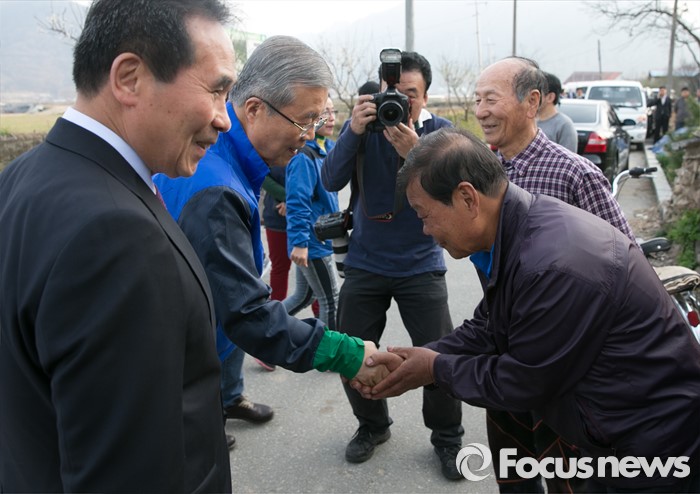 (순창=포커스뉴스) 김종인 더불어민주당 비대위 대표 겸 선대위원장이 1일 오후 전북 순창군 가인 김병로 선생 생가를 방문해 인근 주민들과 인사하고 있다.