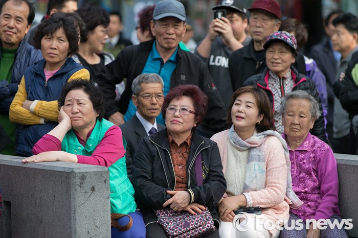 (시흥=포커스뉴스) 1일 오후 경기도 시흥시 삼미시장 입구에서 시민들이 김무성 새누리당 대표의 함진규 시흥갑 후보 지원 유세를 지켜보고 있다.