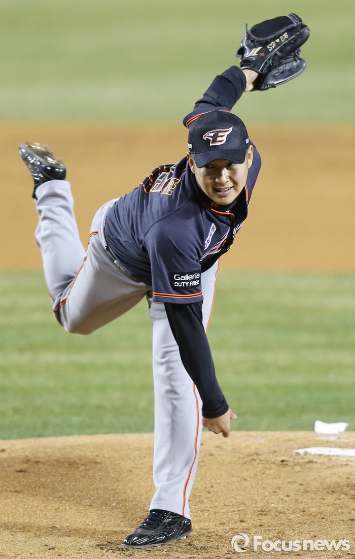 (서울=포커스뉴스) 1일 서울 잠실구장에서 열린 2016프로야구 개막전 한화-LG 경기에서 1회말 한화 선발투수 송은범이 투구하고 있다.