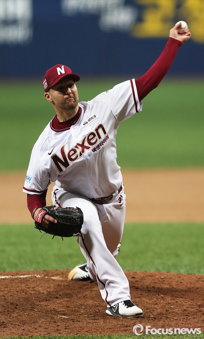 (서울=포커스뉴스) 1일 오후 서울 구로구 고척스카이돔에서 열린 2016 타이어뱅크 프로야구 개막전 넥센 히어로즈와 롯데 자이언츠의 경기 2회 넥센 피어밴드가 투구하고 있다.