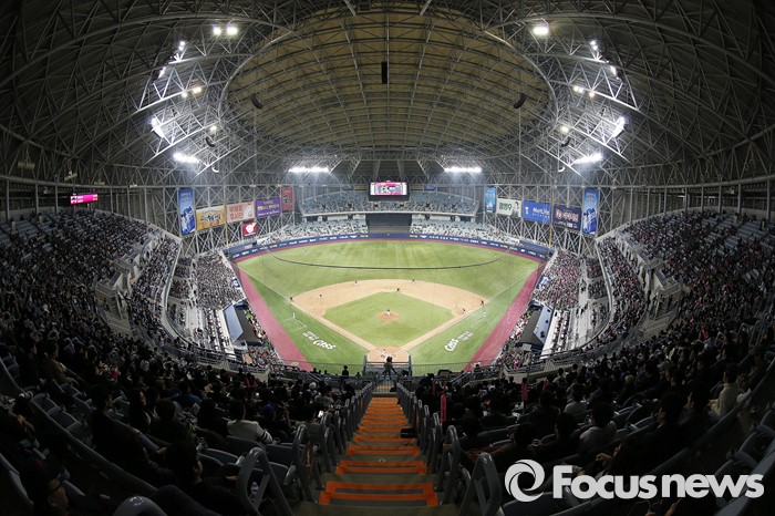 (서울=포커스뉴스) 1일 오후 서울 구로구 고척스카이돔에서 2016 타이어뱅크 프로야구 개막전 넥센 히어로즈와 롯데 자이언츠의 경기가 열리고 있다.