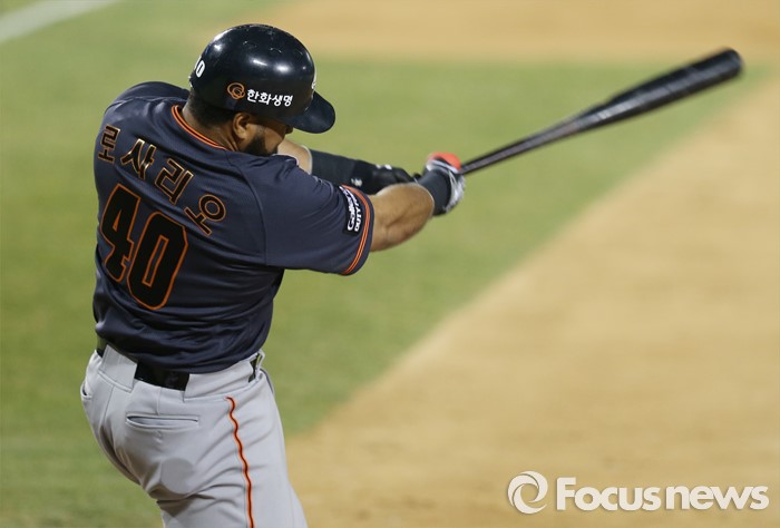 (서울=포커스뉴스) 1일 서울 잠실구장에서 열린 2016프로야구 개막전 한화-LG 경기5회초 1사 2루에서 한화 로사리오가 좌익수앞 안타를 날리고 있다.
