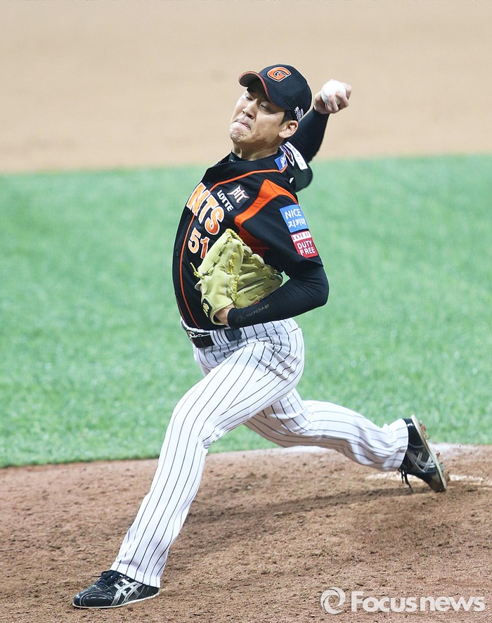 (서울=포커스뉴스) 1일 오후 서울 구로구 고척스카이돔에서 열린 2016 타이어뱅크 프로야구 개막전 넥센 히어로즈와 롯데 자이언츠의 경기 8회말 롯데 다섯번째 투수 윤길현이 투구하고 있다.