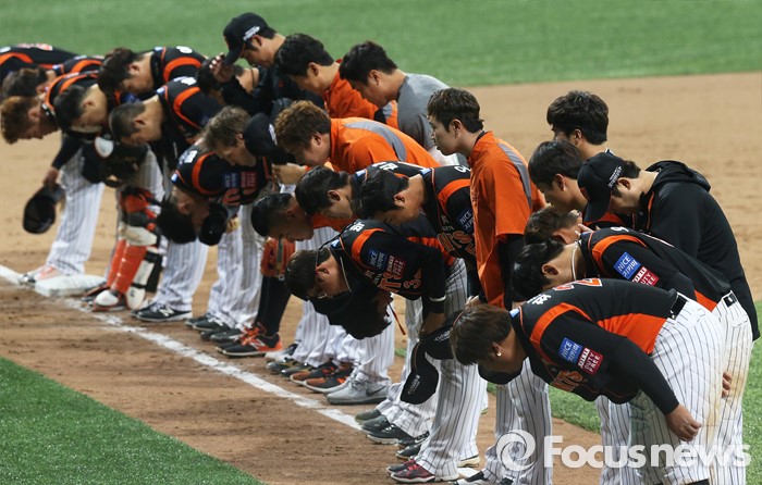 | △ 승리 후 팬들에게 인사하는 롯데 선수들 |