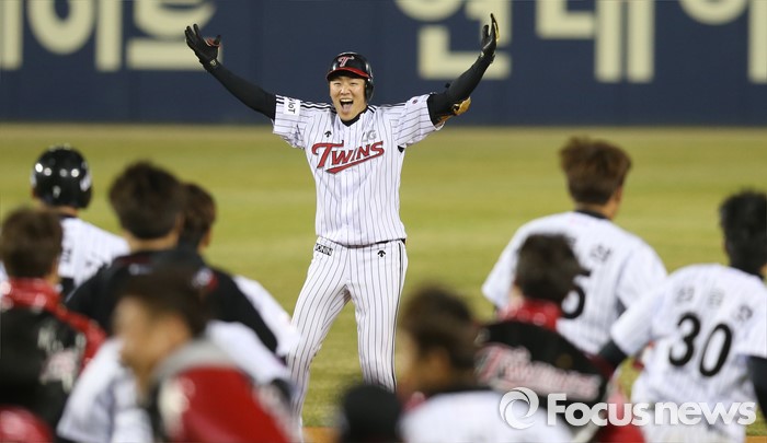 | △ 환호하는 LG 선수들 |