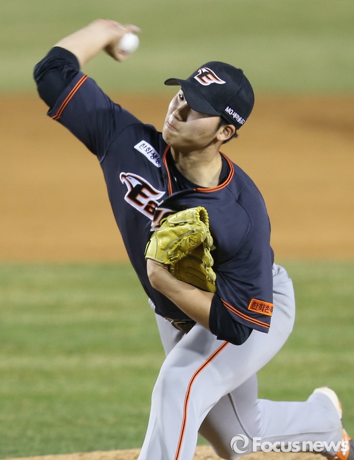 (서울=포커스뉴스) 1일 서울 잠실구장에서 열린 2016프로야구 개막전 한화-LG 경기에서 한화 투수 김민우가 연장 12회말에 투구하고 있다.