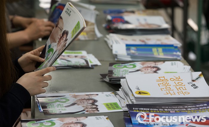 (서울=포커스뉴스) 2일 오후 서울 성북구 선거관리위원회에서 관계자들이 가정으로 발송될 제20대 국회의원 선거 공보물을 정리하고 있다.