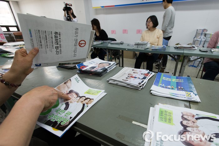 (서울=포커스뉴스) 2일 오후 서울 성북구 선거관리위원회에서 관계자들이 가정으로 발송될 제20대 국회의원 선거 공보물을 정리하고 있다.