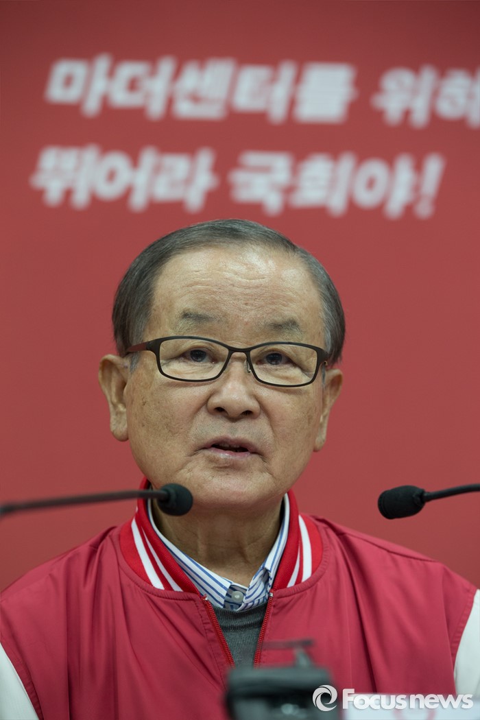 (서울=포커스뉴스) 강봉균 새누리당 공동선대위원장이 3일 오전 서울 영등포구 새누리당 당사에서 경제정책 3·4호 공약을 설명하고 있다.