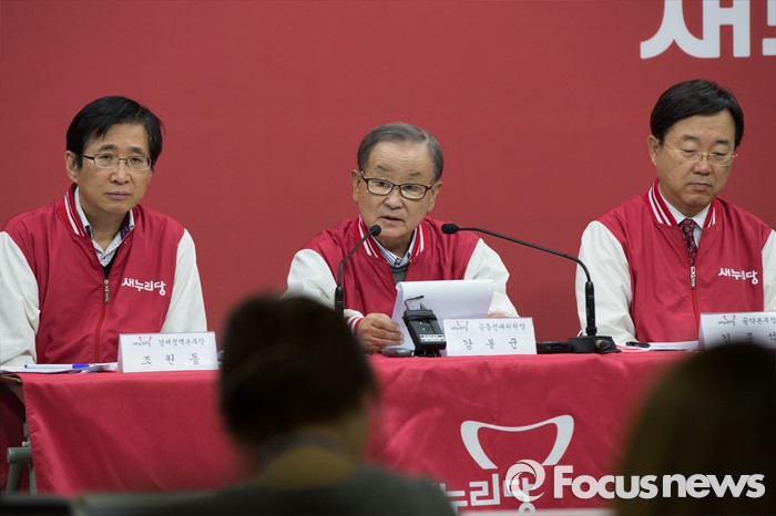 (서울=포커스뉴스) 강봉균 새누리당 공동선대위원장이 3일 오전 서울 영등포구 새누리당 당사에서 경제정책 3·4호 공약을 설명하고 있다.