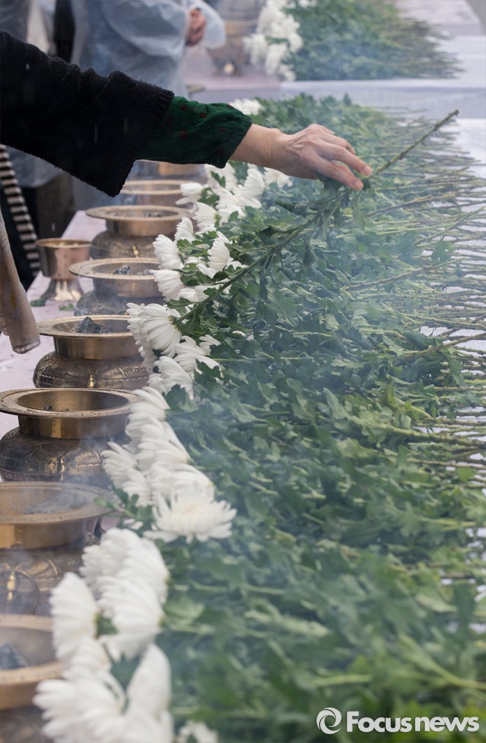 (제주=포커스뉴스) 3일 오전 제주 4ㆍ3 평화공원에서 열린 제68주년 4ㆍ3희생자 추념식에 참석한 시민들이 헌화하고 있다.