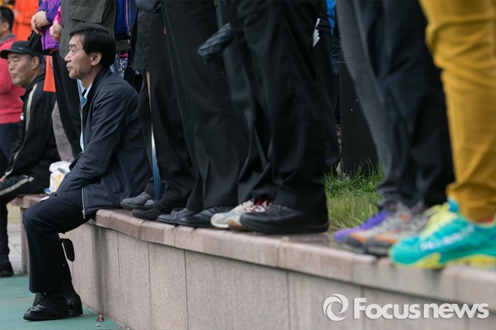(부산=포커스뉴스) 3일 오후 부산광역시 사상구 광장로의 한 대형마트 앞에서 시민들이 손수조 새누리당 사상구 후보 유세를 보고 있다.