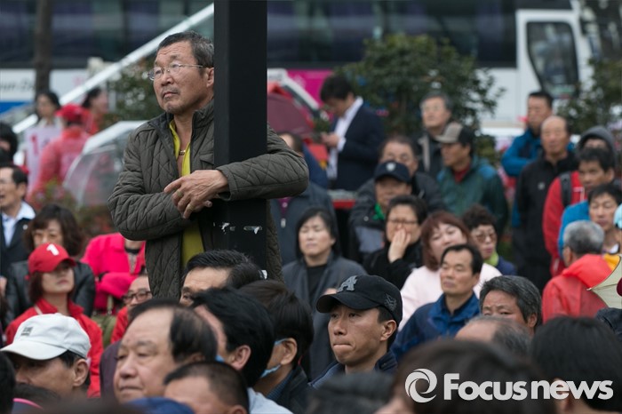 (부산=포커스뉴스) 3일 오후 부산광역시 사상구 광장로의 한 대형마트 앞에서 시민들이 손수조 새누리당 사상구 후보 유세를 보고 있다.