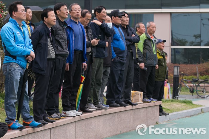 (부산=포커스뉴스) 3일 오후 부산광역시 사상구 광장로의 한 대형마트 앞에서 시민들이 손수조 새누리당 사상구 후보 유세를 보고 있다.