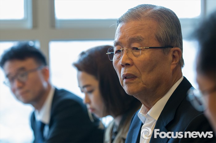 (제주=포커스뉴스) 김종인 더불어민주당 비상대책위원회 대표가 3일 오전 제주 시내의 한 식당에서 가진 오찬간담회에 참석해 취재진의 질문에 답하고 있다.