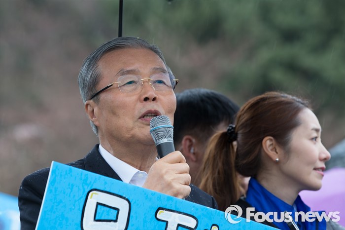 (서울=포커스뉴스) 3일 오후 서울 강서구 방화근린공원 일대에서 김종인 더불어민주당 비대위 대표 겸 선대위원장이 진성준 강서을 후보의 지지를 호소하고 있다.