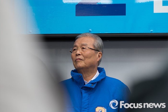 (서울=포커스뉴스) 3일 오후 서울 강서구 화곡역 사거리에서 김종인 더불어민주당 비대위 대표 겸 선대위원장이 강서갑 금태섭, 강서병 한정애 후보와 함께 유세를 하고 있다.