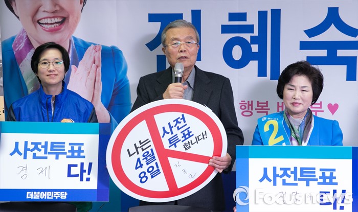 | △ 사전투표 독려 캠페인하는 김종인 |