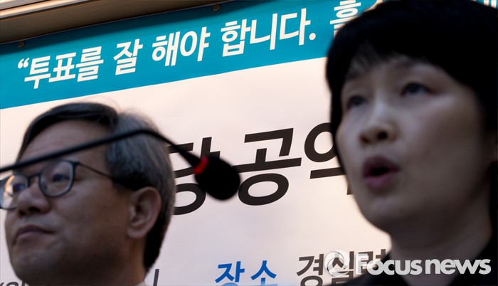 (서울=포커스뉴스) 4일 오전 서울 종로구 경제정의실천시민연합에서 남현주(오른쪽) 경실련 사회복지위원회 정책위원 20대 총선 정당 공약평가 결과발표 기자회견을 하고 있다.