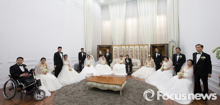 (대전=포커스뉴스) 4일 오전 대전 유성구 호텔ICC에서 열린 제18회 대전장애인자활실천대회 및 합동결혼식에서 신랑과 신부가 대기실에서 사진촬영을 하고 있다.