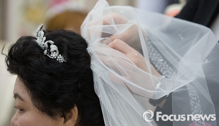(대전=포커스뉴스) 4일 오전 대전 유성구 호텔ICC에서 열린 제18회 대전장애인자활실천대회 및 합동결혼식에서 한 신부가 대기실에서 준비를 하고 있다.