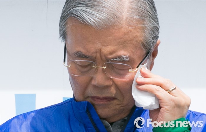 | △ 땀 닦는 김종인 |
