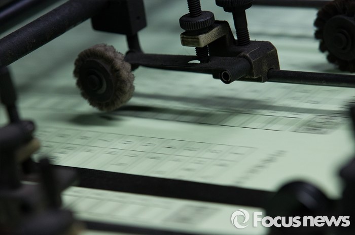 (서울=포커스뉴스) 제20대 국회의원 선거를 9일 앞둔 4일 오후 서울 영등포구 한 인쇄소에서 투표용지가 인쇄되고 있다.