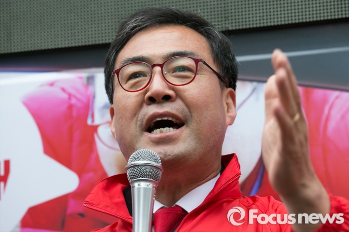 (김해=포커스뉴스) 이만기 새누리당 김해을 후보가 4일 오후 경남 김해시 내외로 외동전통시장 앞에서 유세를 하고 있다.