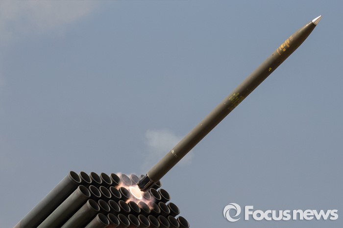 (고성=포커스뉴스) 4일 오후 강원도 고성 송지호해변에서 열린 '2016년 전반기 해상사격 훈련'에서 육군 8군단 포병대대 소속 130mm 다련장 구룡이 로켓탄을 발사하고 있다.