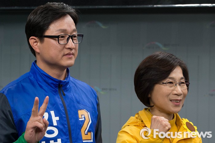 | △ 은평구을 야권 후보, '화이팅' |